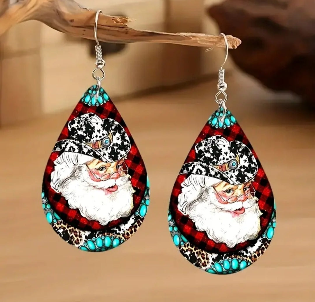 Cowboy Santa Wooden earrings