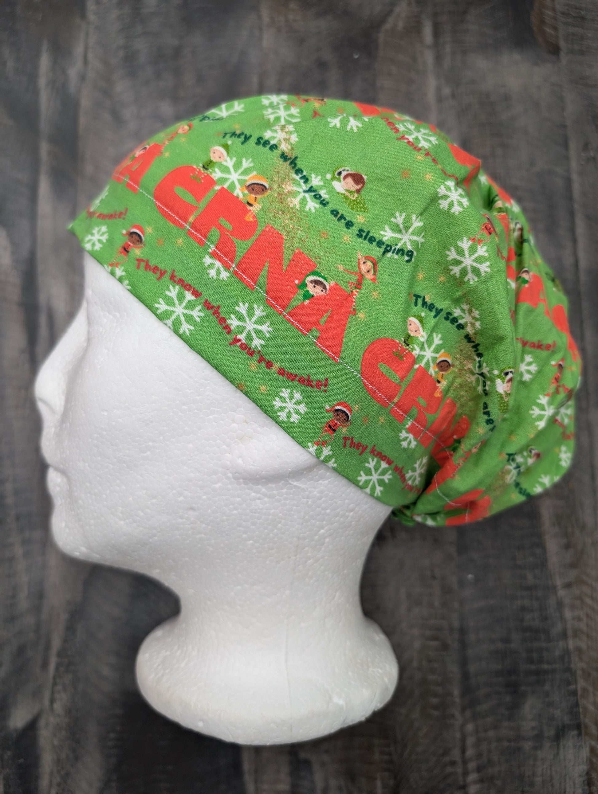 CRNA sleeping/awake Christmas Bouffant/euro hybrid style surgical/scrub/dental hat by carolinadreamsbyjen