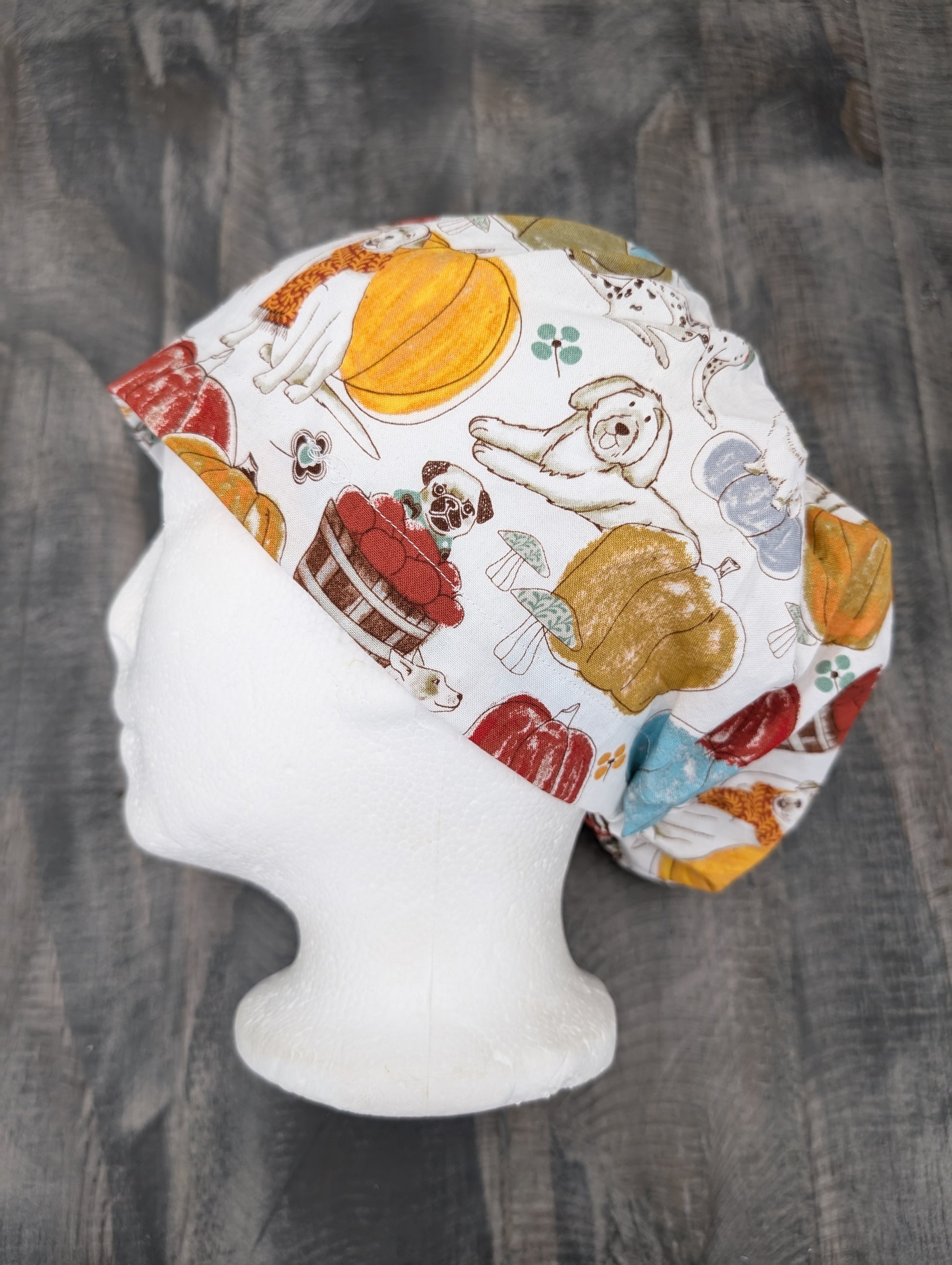 Dogs of fall bouffant/euro hybrid style surgical/scrub/dental hat by carolinadreamsbyjen